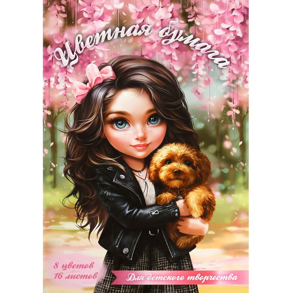 Бумага цветная 16 л 8 цвет. Брюнетка с собачкой 69944
