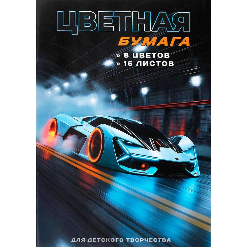 Бумага цветная 16 л 8 цвет. Спорткар 73173