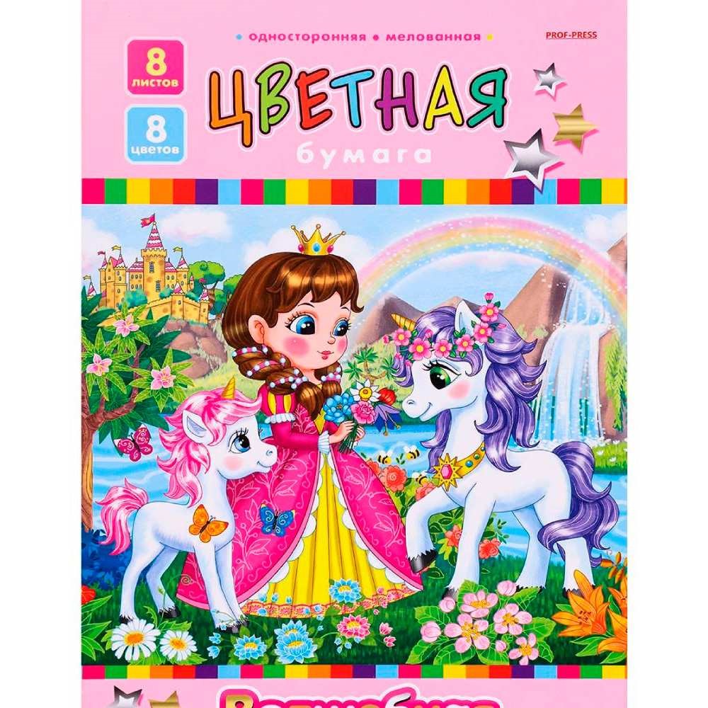 Бумага цветная 8 л. 6 цв. + зол+сер "Волшебная" В сказочном мире 08-3730