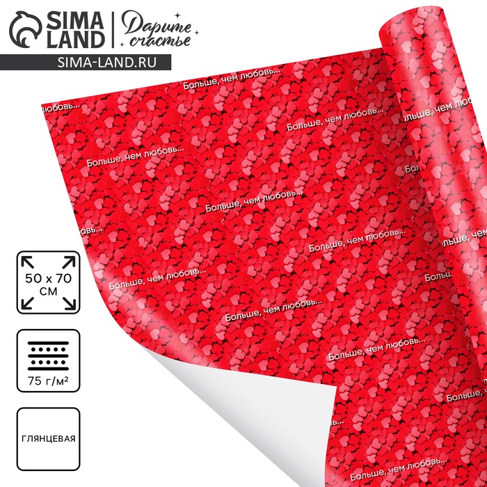 Бумага упаковочная глянцевая «Больше, чем любовь», 70 ? 100 см (комплект 10 шт)