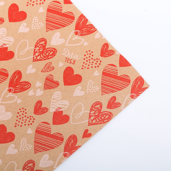 Бумага упаковочная крафтовая бурая в рулоне «Сердечки», 0.68 х 8 м
