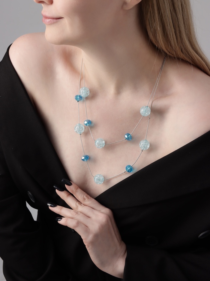 Бусы «Карамель» два ряда, бусина №16, цвет голубой в серебре, 54 см