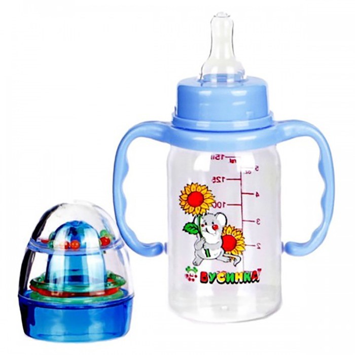 Бутылочка с ручками и погремушкой 125 мл 1115