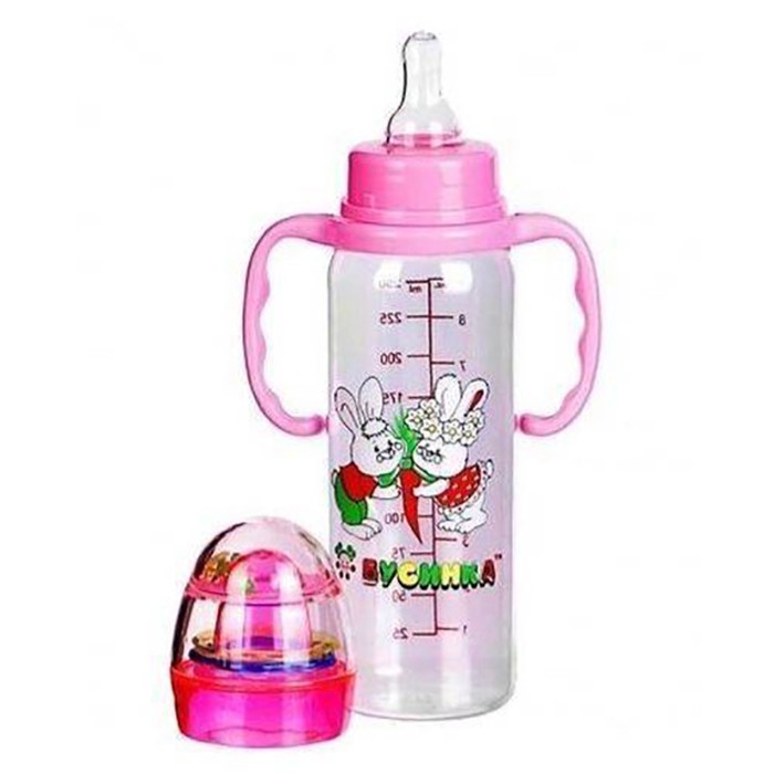 Бутылочка с ручками и погремушкой 240 мл 1114