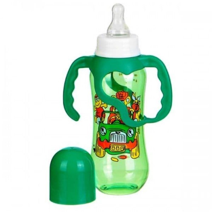 Оригинальная удобная бутылочка предназначена для кормления малышей смесью, также можно использовать для воды или травяных чаев. Соска анатомической формы выполнена из силикона, имеется защитный колпачок. Также у бытылочки есть съемные ручки, чтобы малыш сам смог держать бутылочку. Бутылочка легкая, прочная, не бьется. Яркий дизайн понравится малышу. Изделие выполнено из безопасных материалов, не содержит бисфенол. Подходит для всех типов стерилизаторов, можно стерилизовать кипячением в открытой посуде - не более 2 минут. Разогревать в микроволновой печи можно только в открытом виде (без соски).