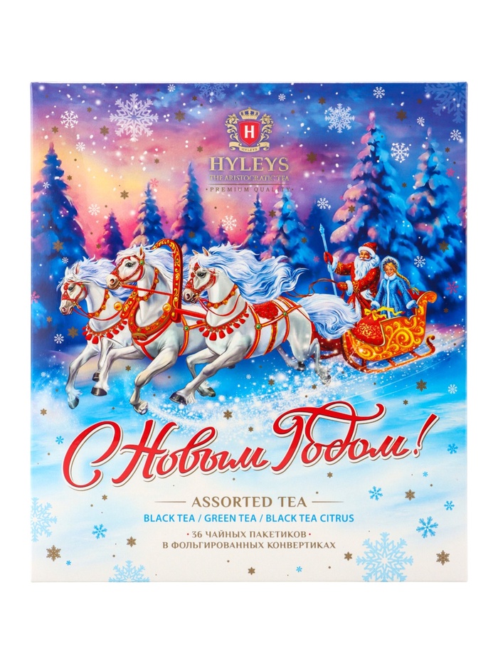 - Праздничный дизайн: Новогодняя упаковка выделяет набор среди стандартных чаёв. Подходит как недорогой сувенир, дополнение к основному подарку или элемент подарочной корзины.