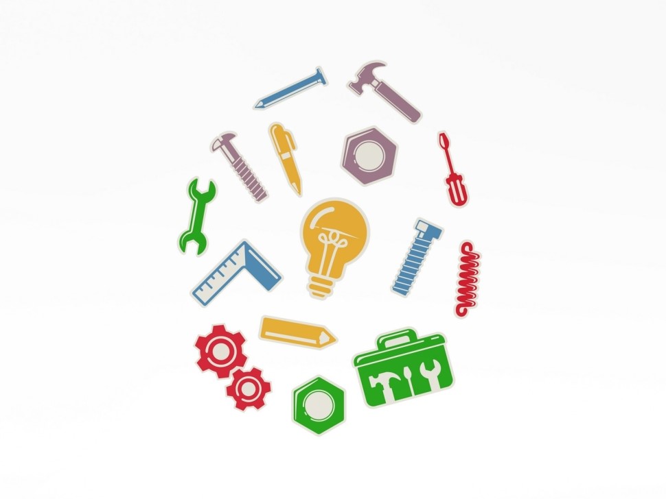 Набор ярких декоративных панелей, оформленных в тематике технического творчества и конструирования. Каждая панель выполнена в виде узнаваемых инструментов и деталей, используемых на занятиях по конструированию: молотка, отвертки, гаек, болтов, шестеренок, пружин, линейки и других элементов. Изображения стилизованы, но легко узнаваемы, что помогает детям ориентироваться в инструментах и развивает интерес к инженерному труду. Изготовлены из качественных, безопасных материалов с гладкой окрашенной поверхностью, которую легко очищать влажной тряпкой. Панели украшают помещение, создают творческую атмосферу и формируют интерес к работе руками.
