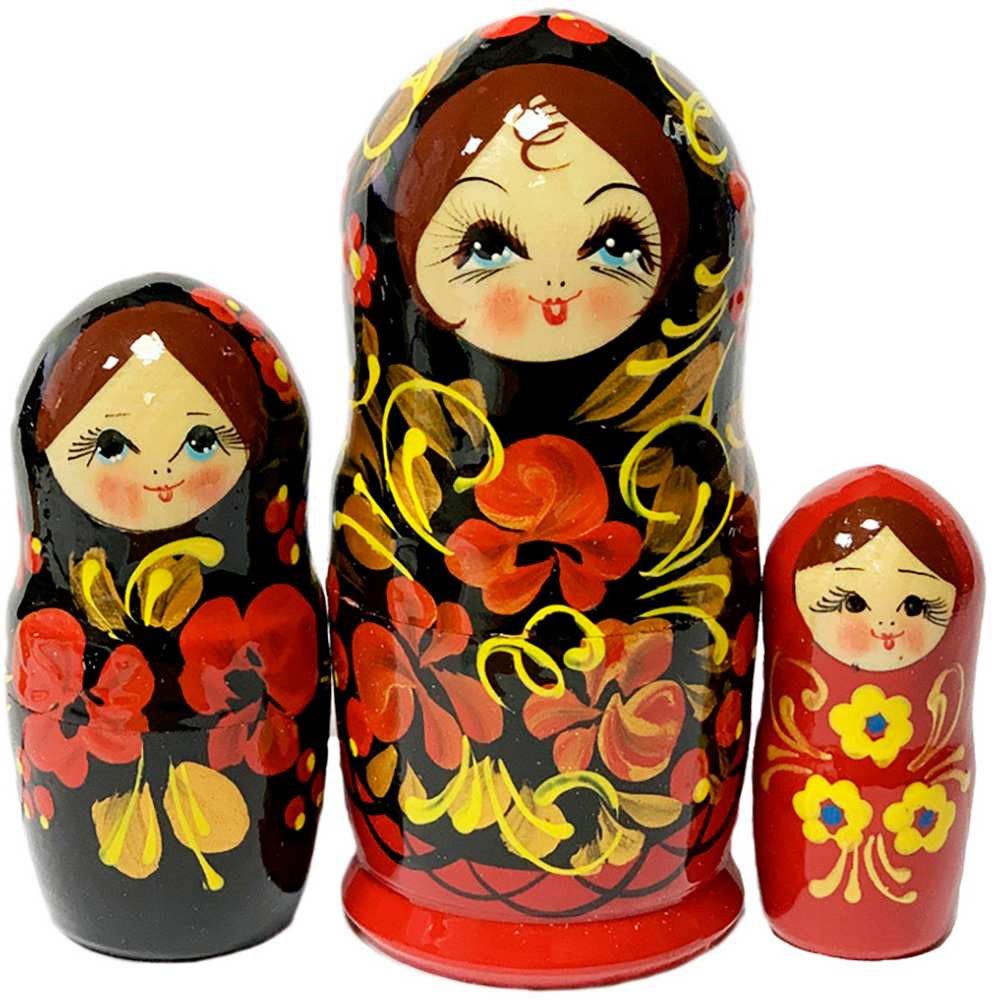 Деревянная Матрешка 3 в 1 большая Цветы, Эскиз 03, Розы М03130303