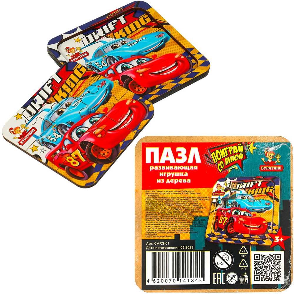 Деревянный Пазл тачки, 10*10 см терм. пакет Буратино CARS-01