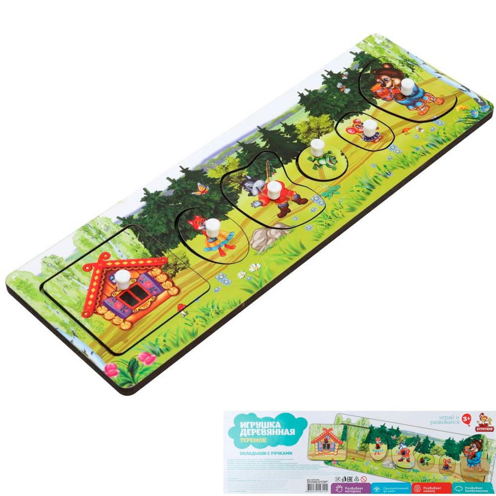 Деревянная игра состоит из основы и различных фигурных элементов, которые нужно располагать по принципу рамок и вкладышей.