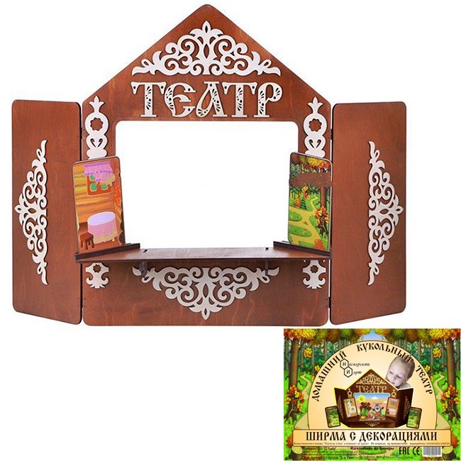 Деревянная Ширма для кукольного театра с декорациями 7839