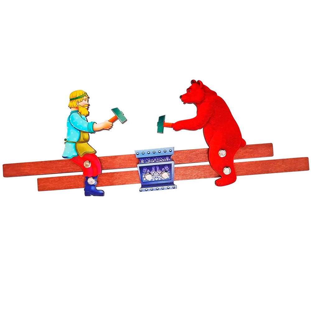 Деревянная Богородская игрушка "Кузнецы: Мужик и медведь" окраш. 8764 /45/