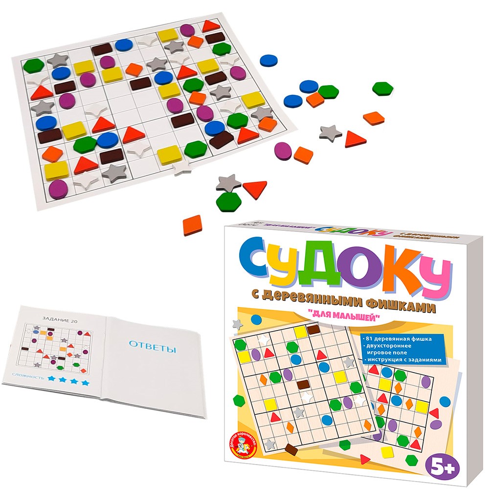 Увлекательная и занимательная головоломка «Судаку с деревянными фишками» от бренда «Десятое Королевство» понравится всем любознательным детям.