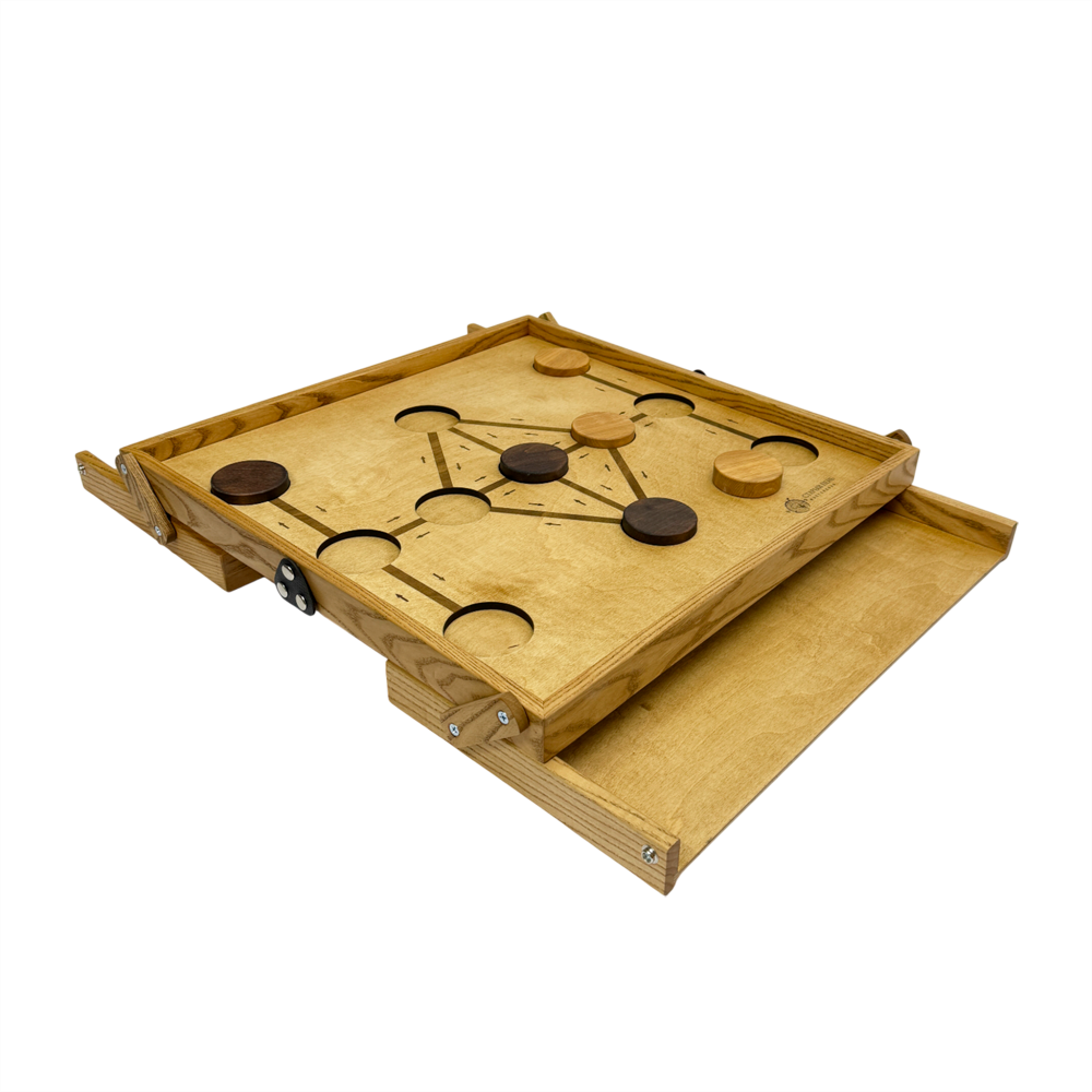 Настольная игра из дерева "3 в ряд" – это лаконичная стратегическая игра, требующая концентрации и тактического мышления. Цель игры проста: первым переместить все свои три фишки ("печенки") со своей стартовой линии на стартовую линию противника. Компактность игры делает ее идеальным выбором для путешествий и быстрых партий.