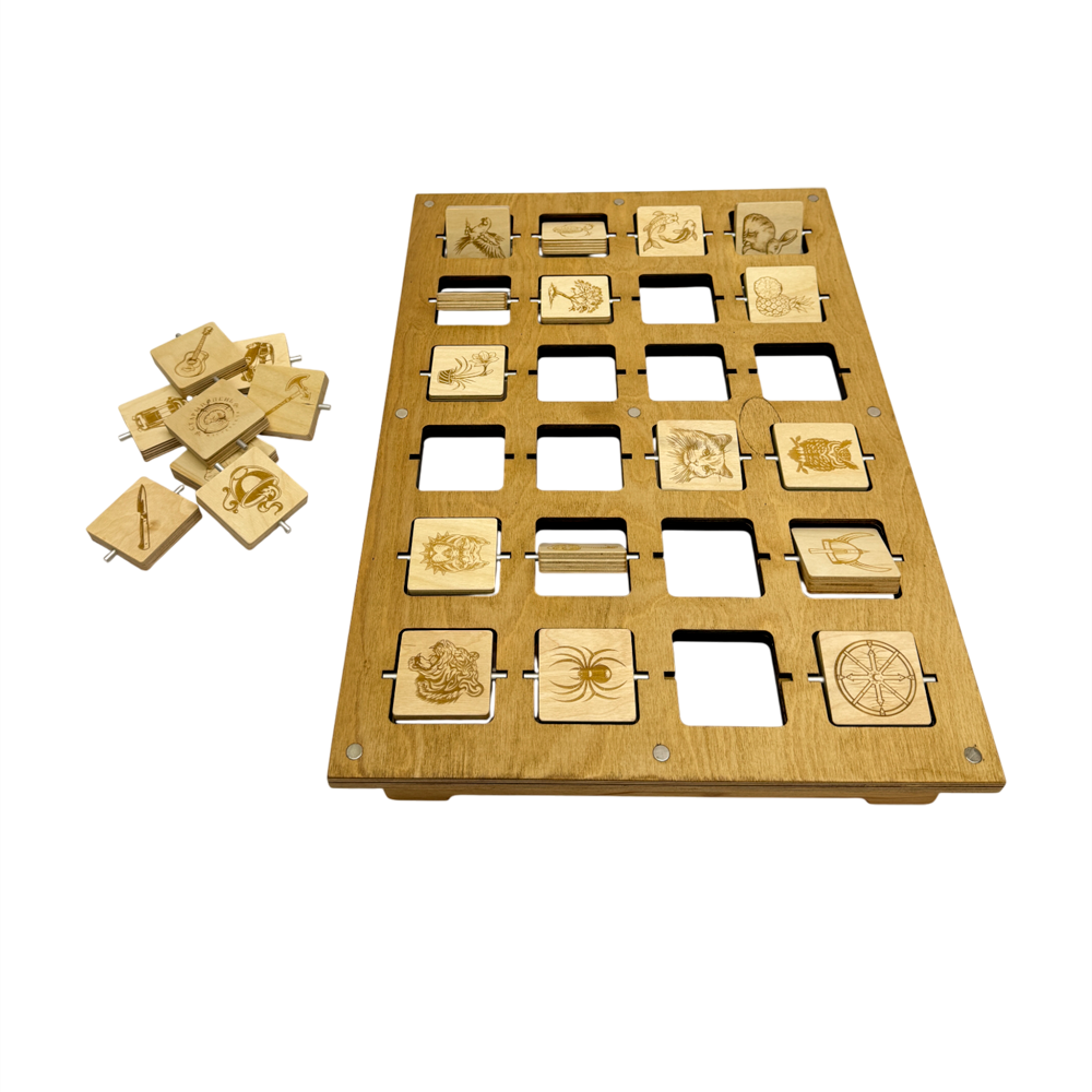 Настольная игра из дерева Галерея, вдохновлённая популярным телешоу "Выжить в Самарканде", приглашает вас на захватывающий турнир интеллекта и наблюдательности. Ваша задача – опередить соперника в количестве угаданных картинок, продемонстрировав исключительную память и внимание к деталям