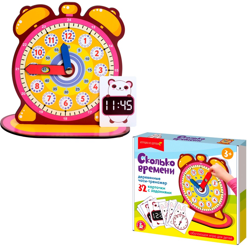 Комплектация: часы, подставка, 32 карточки