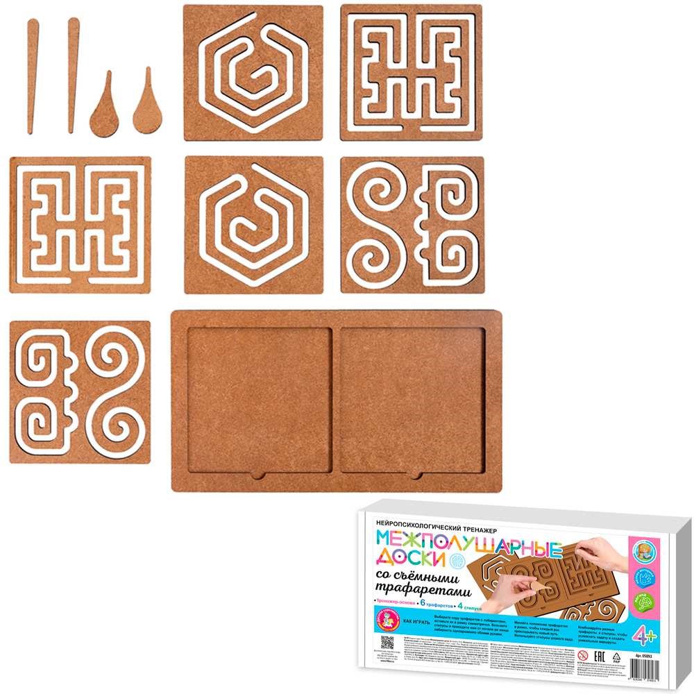 Деревянная Игра развивающая Межполушарные доски со съёмными трафаретами (Нейропсихологический тренажер) 05893