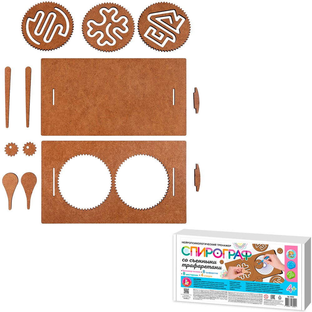 Деревянная Игра развивающая Спирограф со съёмными трафаретами (Нейропсихологический тренажер) 06000