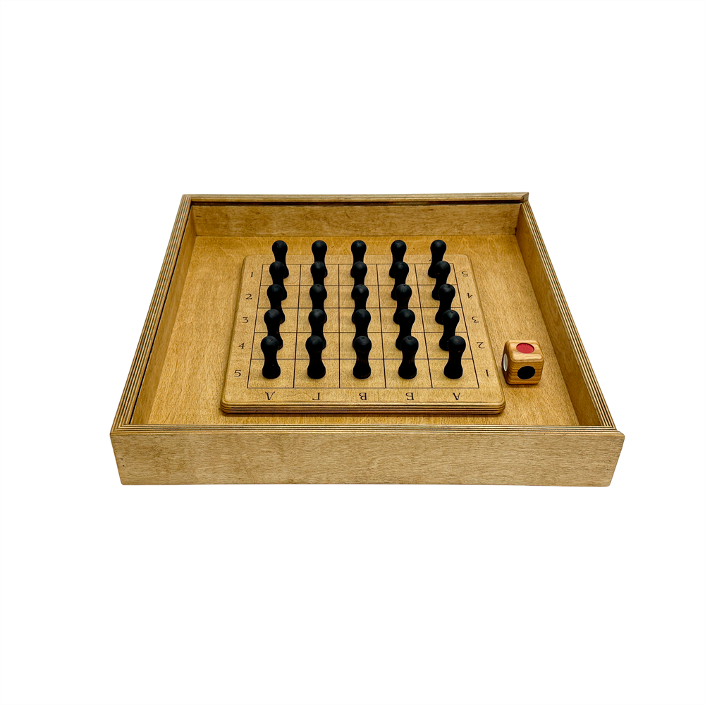 КомплектацияИгровое поле в пенале, 25 фигур, игральный кубик