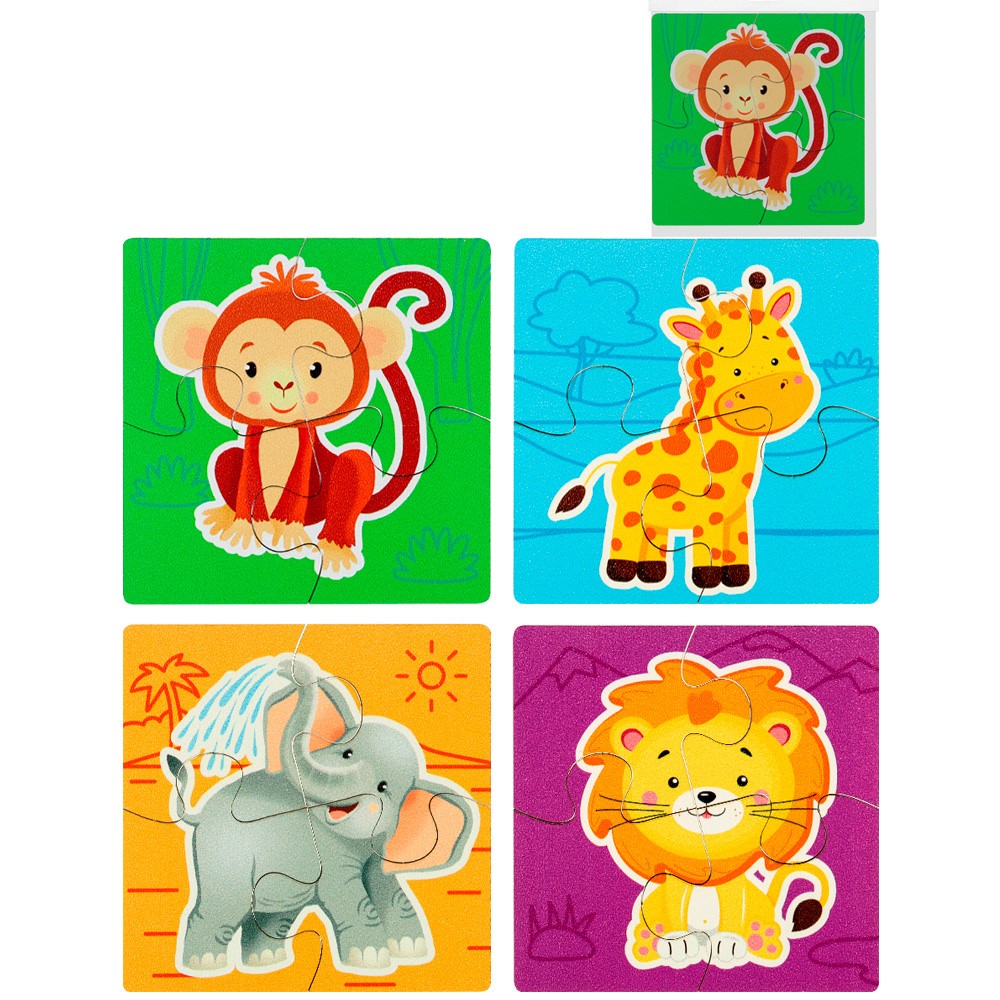 Деревянная Пазл Дикие животные 10х10 см, 4 пазла ПЗ00076