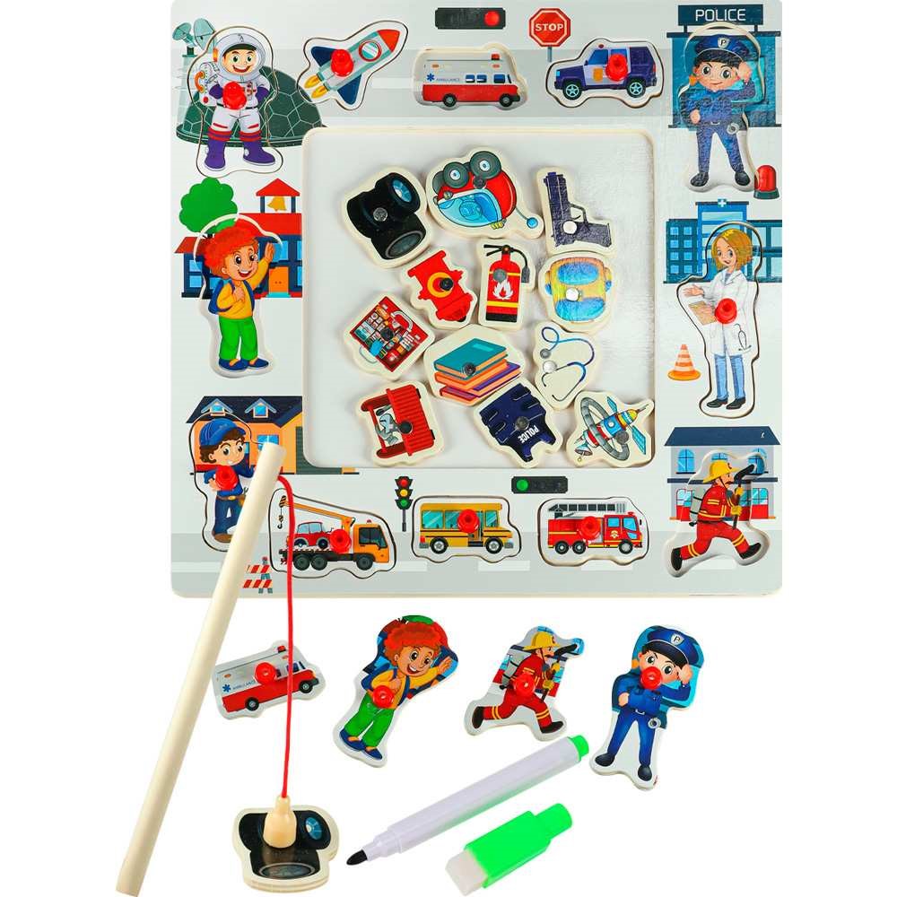 Деревянная Пазл рамка магнитная с рыбалкой и маркером 30х30см. И-0408