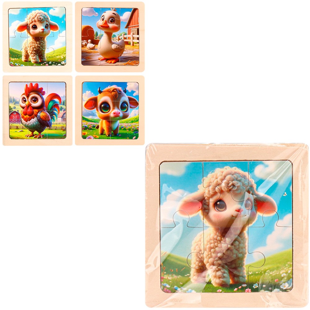 Деревянная Пазл-рамка Жители фермы 10x10 см, 4 шт. в наборе ИД-0209
