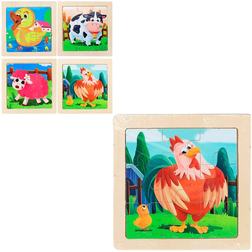 Деревянная Пазл-рамка Жители фермы 11x11 см, 4 шт. в наборе ИД-0210