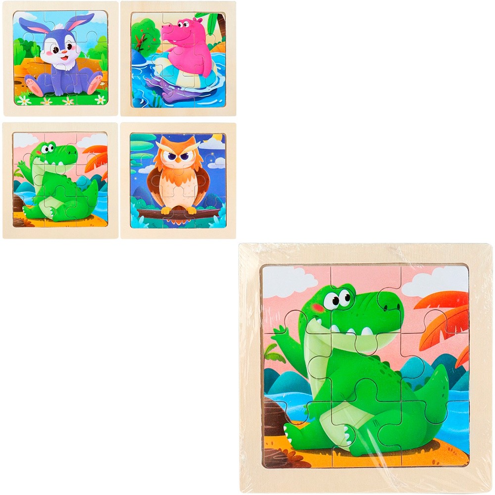 Деревянная Пазл-рамка Животные 11x11 см, 4 шт. в наборе ИД-0213