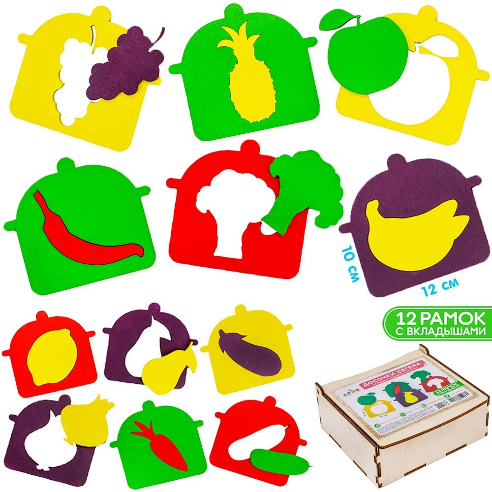 Деревянная Пазл-вкладыш Досочки Сегена Кастрюльки Овощи фрукты /Арбо/