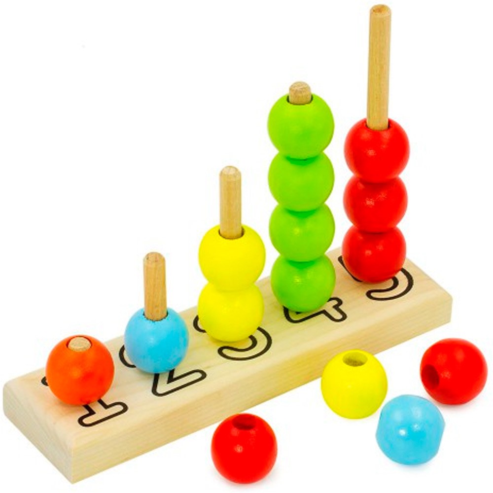 Задача малыша — нанизывать фигуры на штырьки в зависимости от задания: по цвету, в некой последовательности, по количеству.