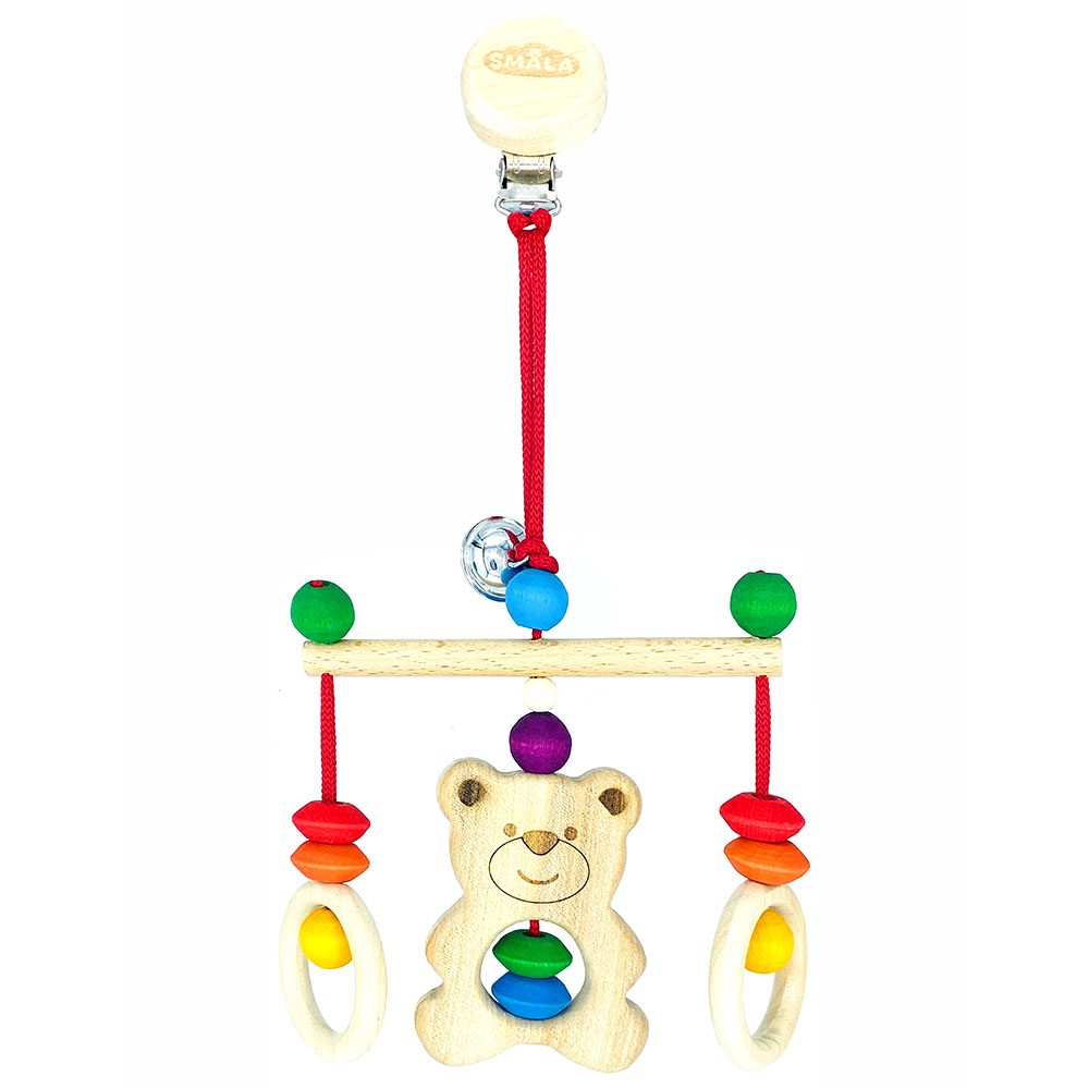 Деревянная подвеска с милым медвежонком порадует малышей и не даст заскучать, пока родители заняты своими делами.