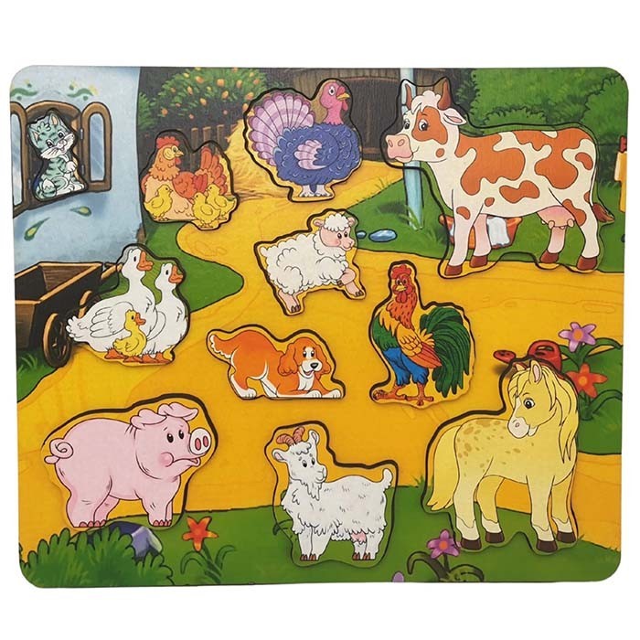 Игровой набор «Кто живет на ферме?»– это развивающая детская игра, которая обязательно понравится ребенку. Игрушка представляет собой деревянную доску с вырезанными фигурками, которые вынимаются из нее и вставляются обратно.