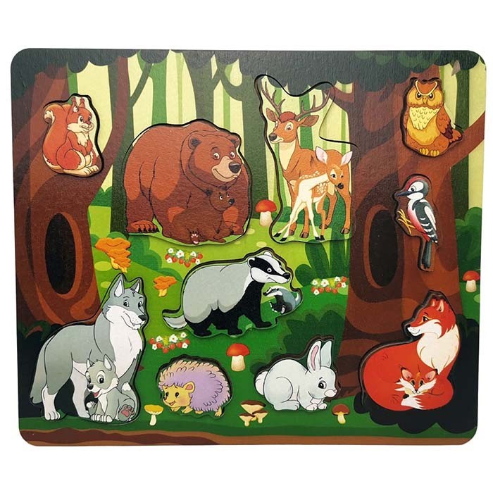 Игровой набор «Кто живет в лесу?»– это развивающая детская игра, которая обязательно понравится ребенку. Игрушка представляет собой деревянную доску с вырезанными фигурками, которые вынимаются из нее и вставляются обратно.