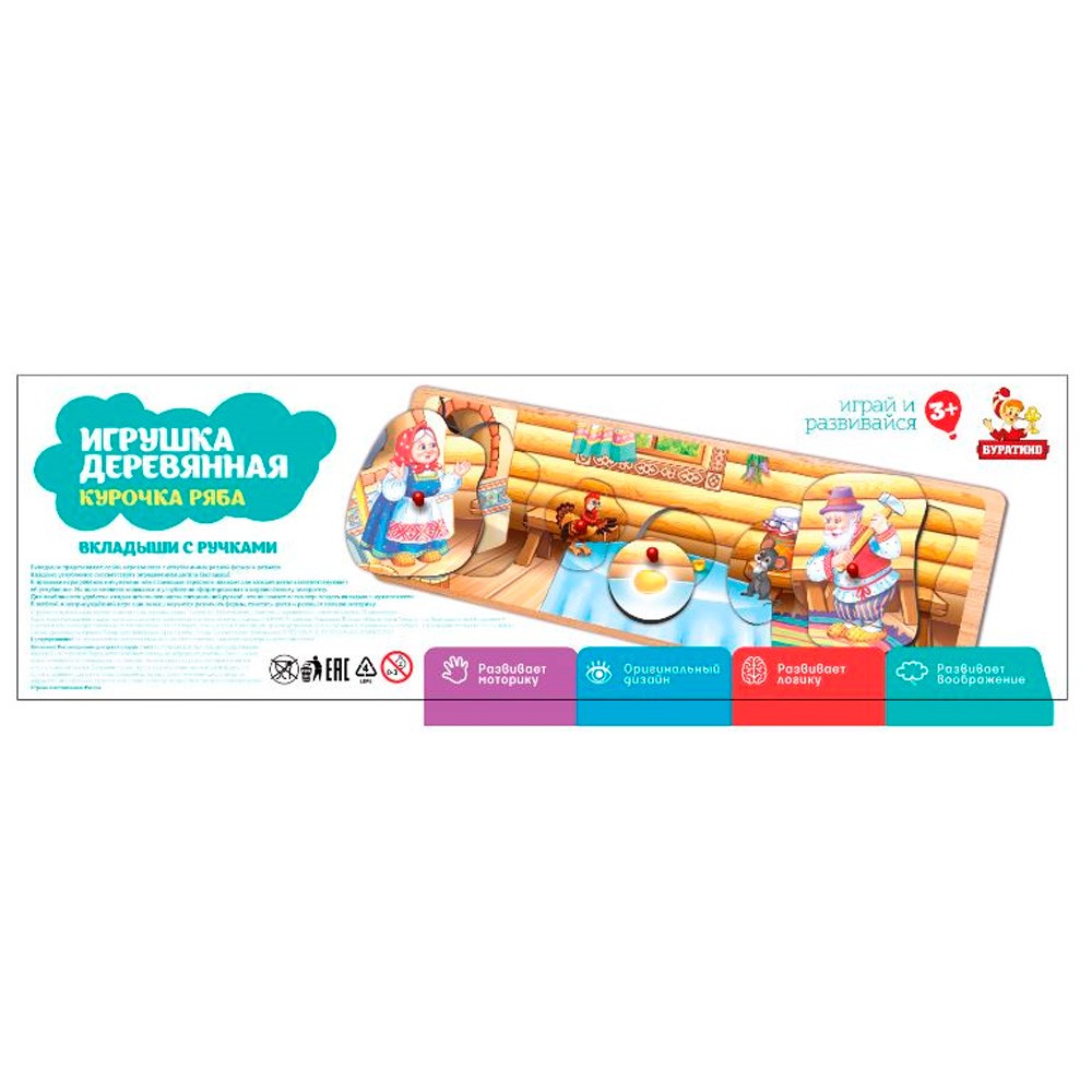 Деревянная Рамка вкладыш Курочка ряба Буратино W0213