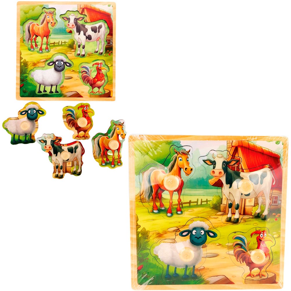 Деревянная Рамка-вкладыш Животные деревни 15x15x0,6 см ИД-0175