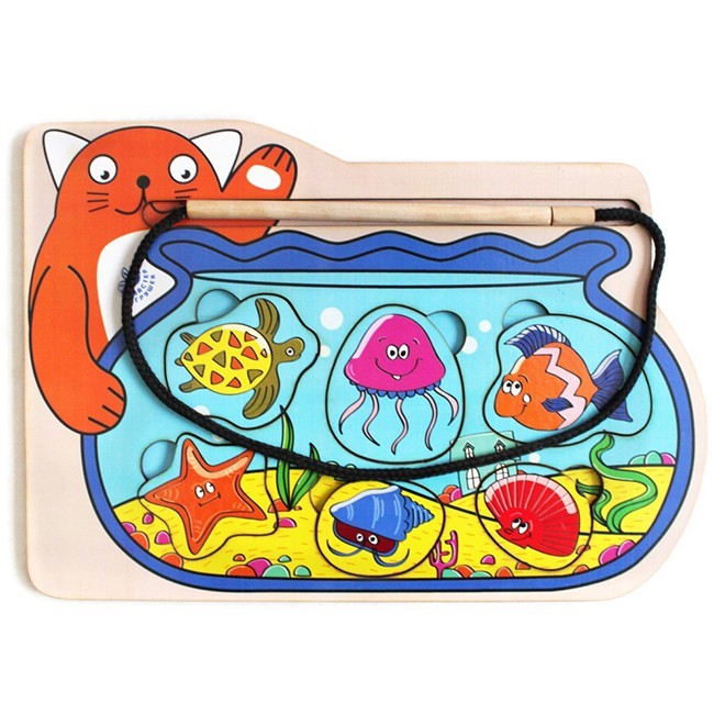 Половить яркую рыбку - очень просто с игрой "Кот-рыбак". В комплект входит рамка с вкладными элементами, а также удочка с магнитным наконечником, на которую и будет ловиться рыбка. Это занятие способно надолго завладеть детским вниманием, поможет ребенку потренировать ловкость, координацию, глазомер и точность. Кроме того, в процессе игры ребенок познакомится с обитателями морских глубин, выучит их внешний вид и название.
