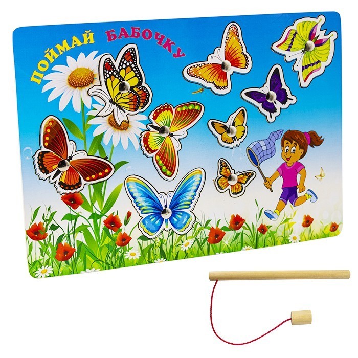 Комплектация: деревянная рамка, магнитная удочка, фигурки бабочек