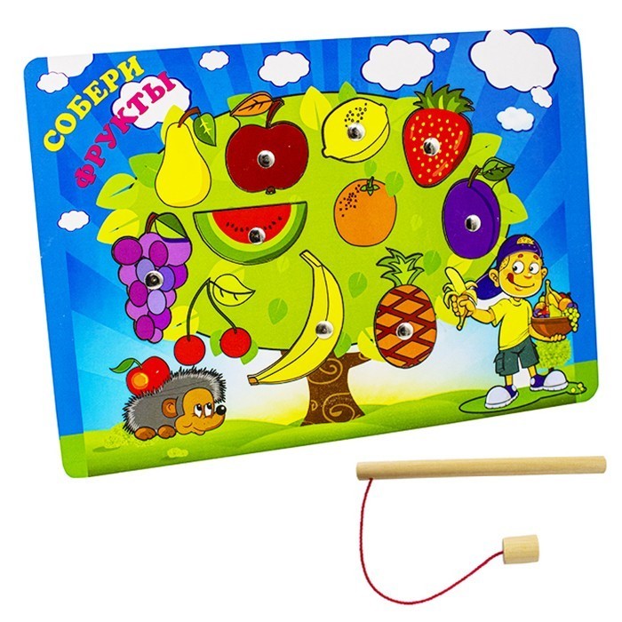 Комплектация: деревянная рамка, магнитная удочка, фигурки фруктов