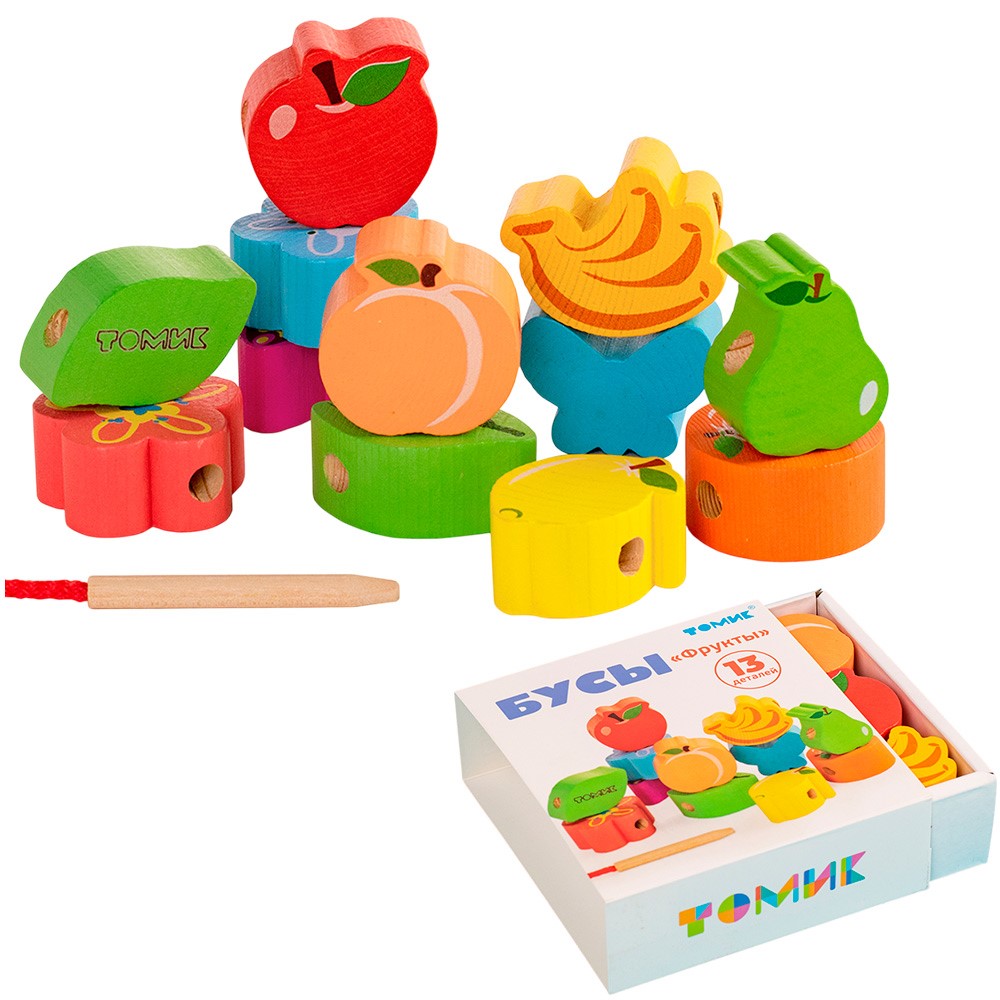 Деревянная шнуровка Шнуровка Бусы Фрукты 13 деталей Ш-04