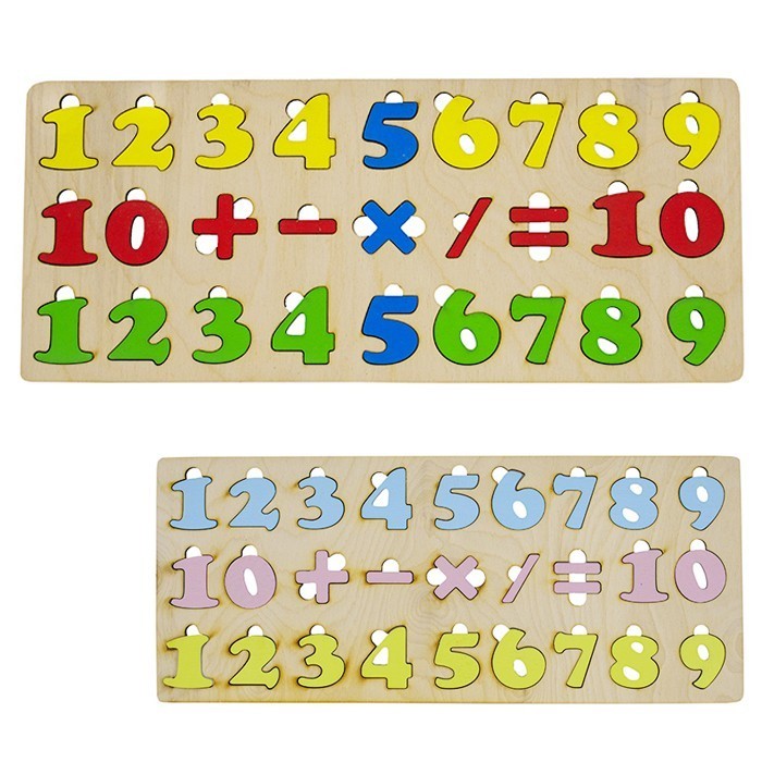 Деревянные цифры - отличное учебное пособие для ребят, которые осваивают навыки счета. В комплект входит основа с углублениями, в каждое из которых вкладывается соответствующая цифра или арифметический знак, а чтобы символы было удобно доставать, предусмотрены выемки для пальчиков. Малыши будут учить числа, вкладывая их в основу, знакомиться с арифметическими знаками и составлять целые примеры на сложение, вычитание, деление или умножение. Основа и все вкладные элементы набора выполнены из хорошо отшлифованной древесины, покрыты безопасными, нетоксичными красителями.