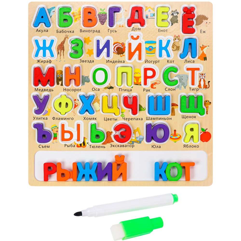 Деревянный Алфавит с доской и маркером 30х30см И-0394