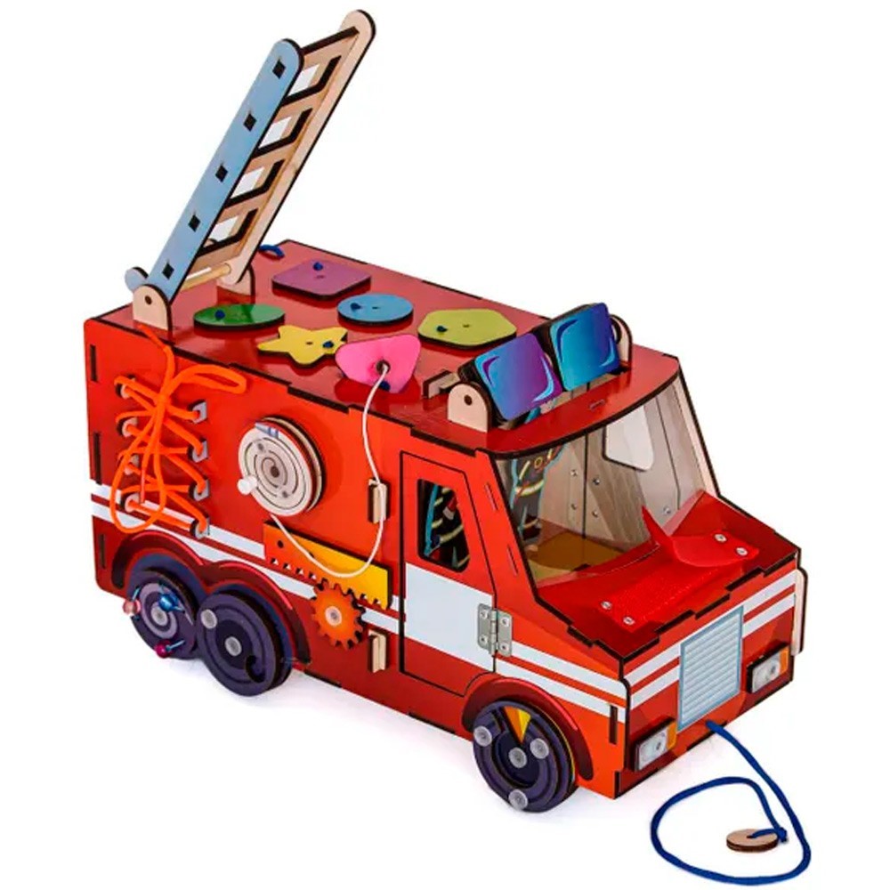 Бизиборд «Пожарная машина» – многофункциональная игрушка, которая поможет детям развить мелкую моторику, координацию движений, усидчивость, хватательные рефлексы и воображение.