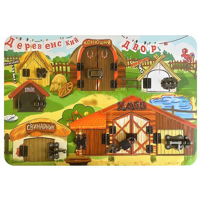 Деревянный Бизиборд Замочки Деревенский двор 7820
