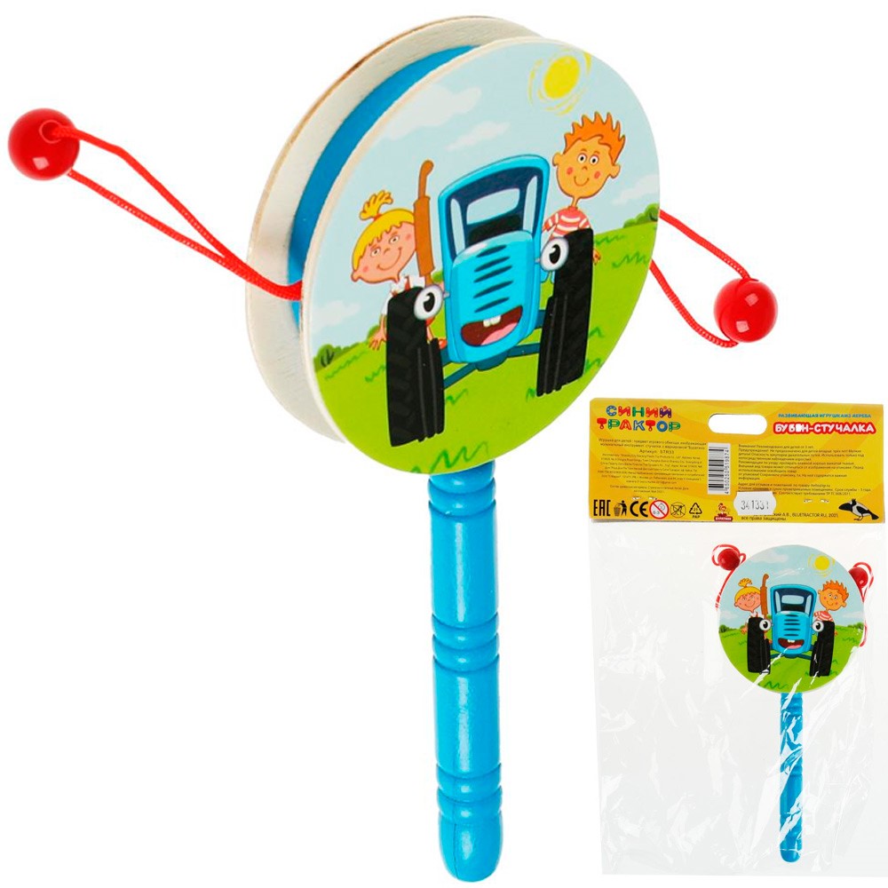 Деревянный Бубен-стучалка СИНИЙ ТРАКТОР STR33 /324/