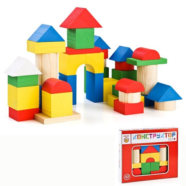 Деревянный конструктор 43 дет. Городок Цветной 6678-43