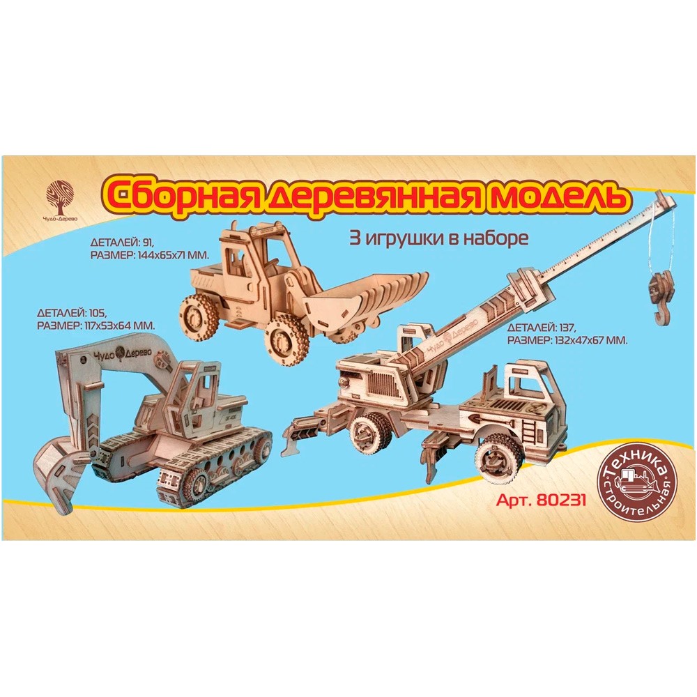 Деревянный Конструктор Набор Строительных автомобилей 3 шт. 80231