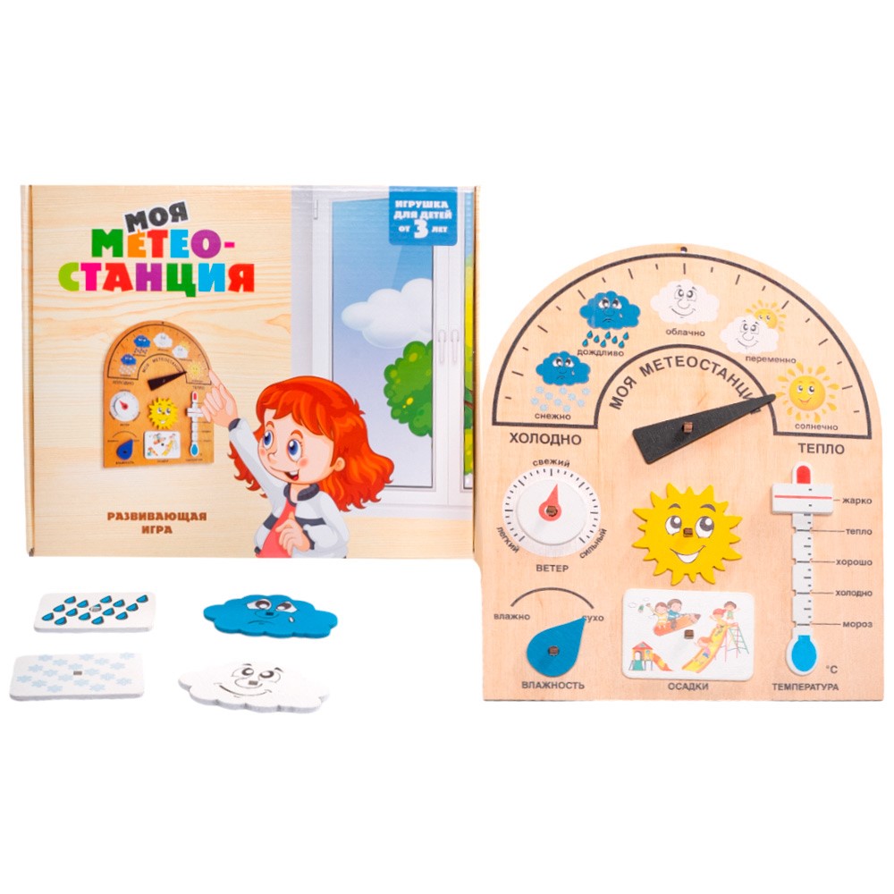 Развивающая деревянная игра для детей «Моя метеостанция» - это интересный набор для любознательных малышей.