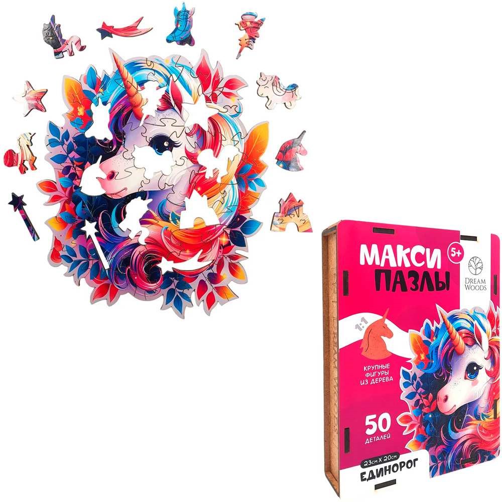 Деревянный Пазл фигурный макси Единорог B-001