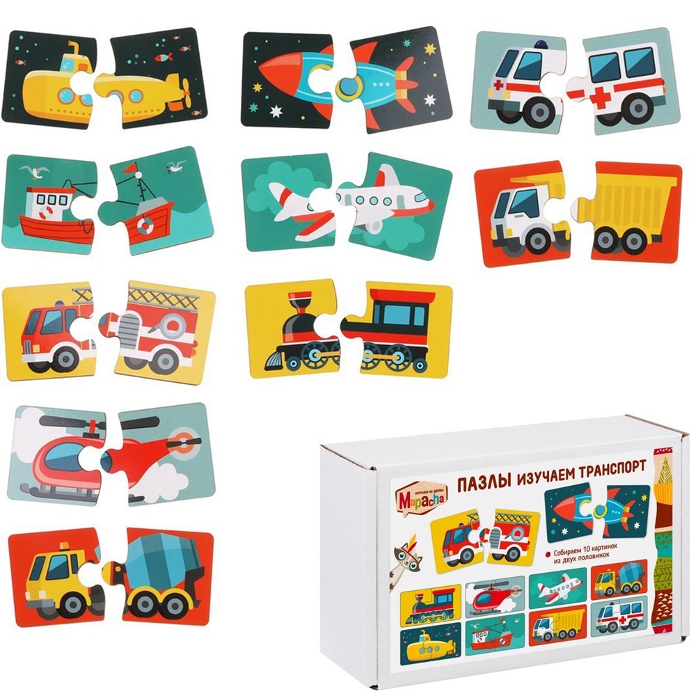 Деревянный Пазл Изучаем транспорт для малышей, 10 картинок, 20 крупн. деталей 962220