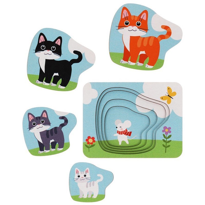 Деревянный Пазл-матрешка Четыре кота, основание 4 детали 962523